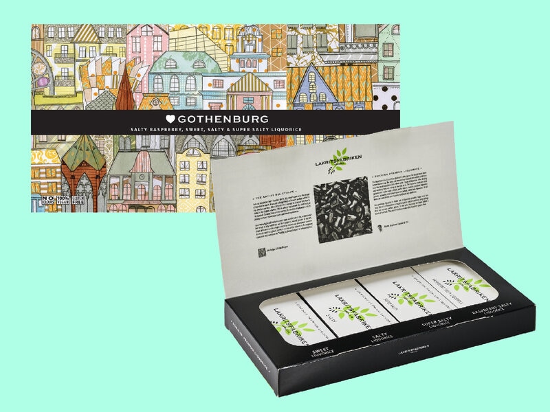 Glæd dig til en helt uimodståelig premiumlakrids i fire forskellige smagsvarianter – samlet i den flotte gaveæske fra Lakridsfabrikken i Ramlösa. Motivet ""Göteborg"" er designet af Mia Stolpe! Æsken er pakket med både sød lakrids, salt lakrids, supersalt lakrids og den ultimative smagskombination: hindbær og salt lakrids! … læs mere her