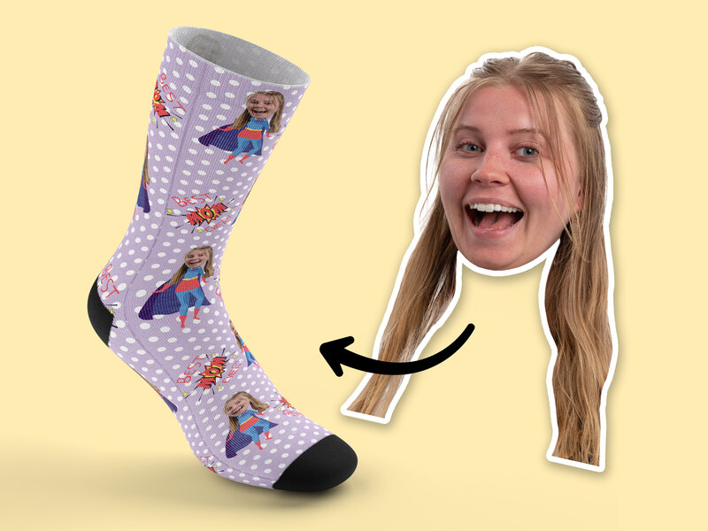 Gør mors dag uforglemmelig med disse personlige Super Mom sokker! Du vælger selv, hvilket foto der skal pryde superheltens krop, og hvilken baggrund der skal printes på sokkerne. … læs mere her
