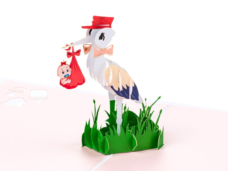 Pop Up-kort – Stork med Baby